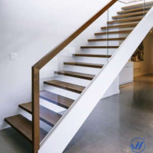 CẦU THANG KÍNH CƯỜNG LỰC TAY VỊN GỖ